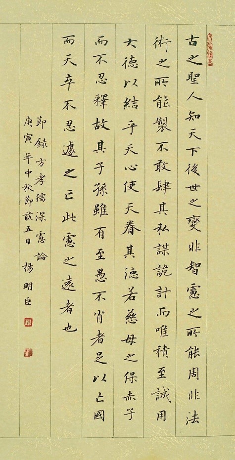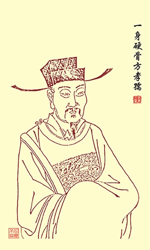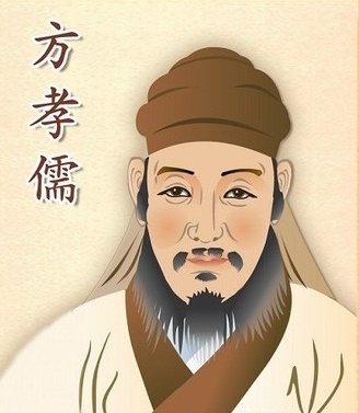 方孝儒(1357—1402年),方克勤之子,字希直,又字希古,号逊志,时人称“缑城先生”。又因在蜀任教时,蜀献王名其读书处为“正学”,亦称“正学先生”。幼时好学;长大后,师从宋濂,常以明王道、致太平为己任。1392年(洪武二十五)年,任汉中府学教授,蜀王聘为世子老师。惠帝即位,召为翰林侍讲,次年迁侍讲学士,后改文学博士,主持编纂《太祖实录》、《类要》。燕王朱棣发动“靖难之役”,他多次为建文帝谋划对策。后朱棣引兵攻入京师,授笔起草登基诏书,方孝孺不从,将笔掷在地上,边哭边骂,于是被杀,共灭十族,死者八百七十余人。