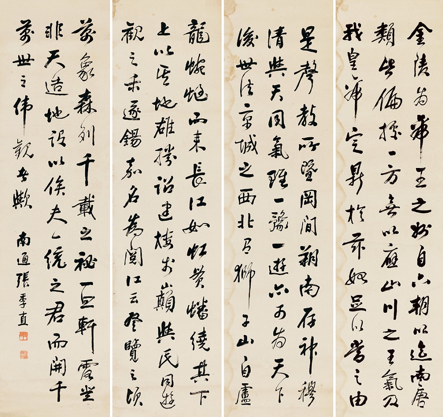 虽然,长江发源岷山,委蛇七千余里而始入海[26],白涌碧翻,六朝之时,往往倚之为天堑;今则南北一家,视为安流,无所事乎战争矣。然则,果谁之力欤?逢掖之士[27],有登斯楼而阅斯江者,当思帝德如天,荡荡难名[28],与神禹疏凿之功同一罔极[29]。忠君报上之心,其有不油然而兴者耶?