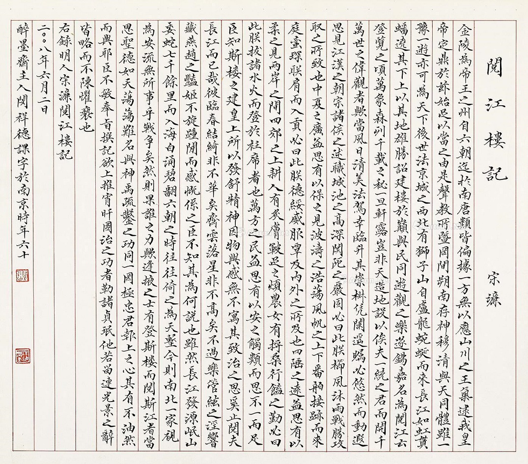 作品简介《阅江楼记》选自《宋文宪公全集》卷七。朱元璋称帝后,下诏于南京狮子山顶修建阅江楼。宋濂奉旨撰写此记。此应制之作颇具特色,颇有明代开国气势,后入选《古文观止》。二零零一年阅江楼落成,成为继武汉黄鹤楼、岳阳岳阳楼、南昌滕王阁后的江南第四大名楼,结束六百年来有记无楼的历史。