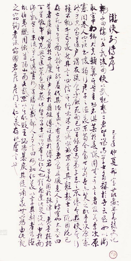 作品简介《游侠列传序》是《史记·游侠列传》的前序。游侠,是指重诺守信言必信,轻生取义的人,即侠客、剑侠等。在文中,司马迁运用对比、衬托手法突出了布衣之侠高贵品质,对他们所遭受的不公正待遇亦表露强烈不满,揭示社会的黑暗与不平,深化主题。反复咏叹以增加抒情性。而字里行间充满作者的爱憎态度。是为史记名文。