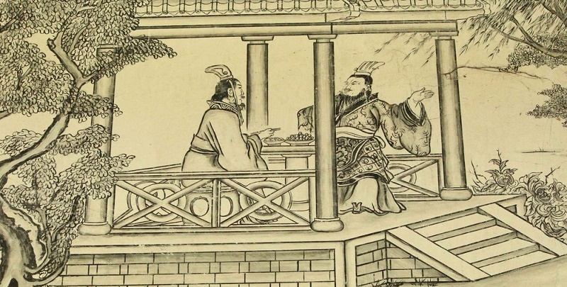 那日,风雨变化,天外龙挂,发生了龙卷天气,于是曹操指天为题,以龙的变化、升隐来暗指英雄的行为,这正指刘备的痛处,刘备就是担心曹操把他当做对手,就是怕曹操把他当作英雄。如果那样,别说刘备要实现自己的政治抱负,连人头都会不保。于是在曹操追问他天下英雄时,他假装糊涂,处处设防,甚至用一些其他人物来搪塞,比如袁绍、袁术、刘表等。以刘备的胸怀,这些碌碌无为之人,又怎么能入他的眼睛?而这些搪塞之语都被曹操寥寥简略的评价一一驳回,针针见血。