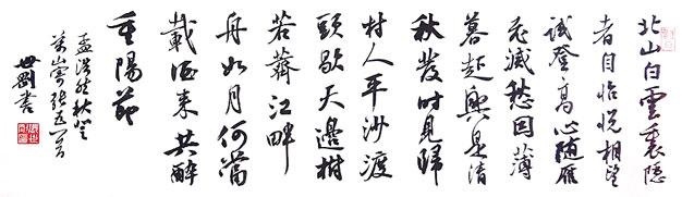 何当载酒来,共醉重阳节。出自唐代诗人孟浩然作品《秋登兰山寄张五》。此诗围绕清秋季节登高来写,表达了对友人的思念之情。先写为望友人而登高,故“心随雁飞灭”。因薄暮时思念之“愁”和清秋之“兴”无法排遣,更因登高而望,只见“归村人”,而不见友人踪影,所以要相邀重阳节携酒登高而醉。全诗用极洗练严谨的语言,描绘了登高所见的清秋薄暮景色,其中“天边树若荠,江畔洲如月”二句历来脍炙人口。