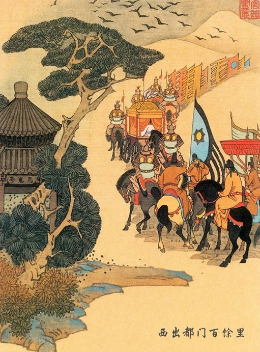 君臣相顾,泪湿衣衫,东望京都心伤悲,信马由缰归朝堂。