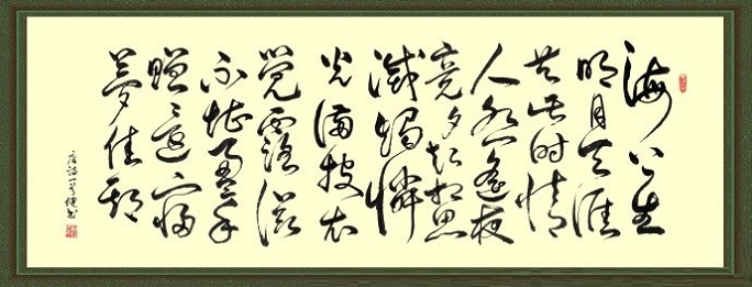 ⑵“海上”二句:辽阔无边的大海上升起一轮明月,使人想起了远在天涯海角的亲友,此时此刻也该是望着同一轮明月。谢庄《月赋》:“隔千里兮共明月”。