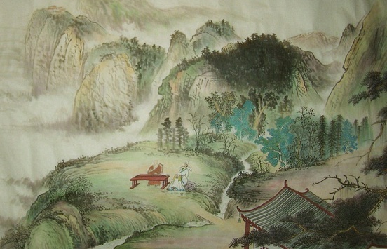 下面一句“余响入霜钟”也是用了典的。“霜钟”出于《山海经·中山经》:“丰山……有九钟焉,是知霜鸣。”郭璞注:“霜降则钟鸣,故言知也。”“霜钟”二字点明时令,与下面“秋云暗几重”照应。“余响入霜钟”,意思是说,音乐终止以后,余音久久不绝,和薄暮时分寺庙的钟声融合在一起。这句诗写琴音与钟声交响,也兼寓有知音的意思。《列子·汤问》里有“余音绕梁,三日不绝”的话。宋代苏东坡在《前赤壁赋》里用“余音袅袅,不绝如缕”,形容洞箫的余音。这都是乐曲终止以后,入迷的听者沉浸在艺术享受之中所产生的想象。“余响入霜钟”也是如此。清脆、流畅的琴声渐远渐弱,和薄暮的钟声共鸣着,这才发觉天色已经晚了:“不觉碧山暮,秋云暗几重。”诗人听完蜀僧弹琴,举目四望,不知从什么时候开始,青山已罩上一层暮色,灰暗的秋云重重叠叠,布满天空。感觉时间过得真快。