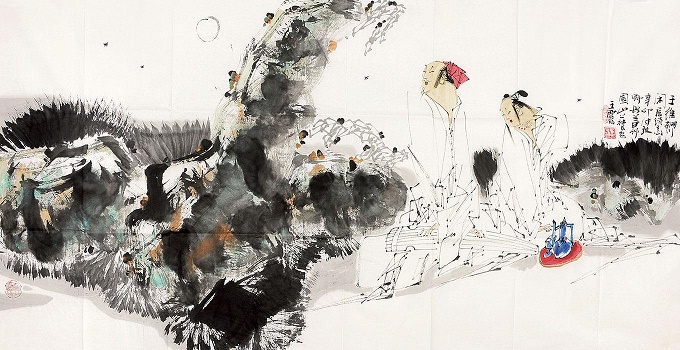 “寒山转苍翠,秋水日潺湲。”首联写山中秋景。时在水落石出的寒秋,山间泉水不停歇地潺潺作响;随着天色向晚,山色也变得更加苍翠。不待颔联说出“暮”字,已给人以时近黄昏的印象。“转”和“日”用得巧妙。转苍翠,表示山色愈来愈深,愈来愈浓;山是静止的,这一“转”字,便凭借颜色的渐变而写出它的动态。日潺湲,就是日日潺湲,每日每时都在喧响;水是流动的,用一“日”字,却令人感觉它始终如一的守恒。寥寥十字,勾勒出一幅有色彩,有音响,动静结合的画面。
