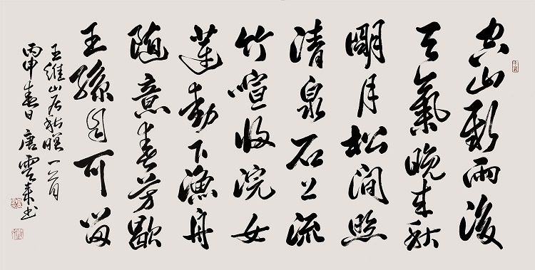 “空山新雨后,天气晚来秋。”诗中明确写有浣女渔舟,诗人却下笔说是“空山”。这是因为山中树木繁茂,掩盖了人们活动的痕迹,正所谓“空山不见人,但闻人语响”(《鹿柴》)。由于这里人迹罕至,“峡里谁知有人来,世中遥望空云山”(《桃源行》),自然不知山中有人来了。“空山”两字点出此外有如世外桃源,山雨初霁,万物为之一新,又是初秋的傍晚,空气之清新,景色之美妙,可以想见。