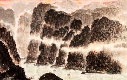 “楚塞三湘接,荆门九派通”,语工形肖,一笔勾勒出汉江雄浑壮阔的景色,作为画幅的背景。春秋战国时期,湖北、湖南等地都属于楚国,而襄阳位于楚之北境,所以这里称“楚塞”。诗人泛舟江上,纵目远望,只见莽莽古楚之地和从湖南方面奔涌而来的“三湘”之水相连接,汹涌汉江入荆江而与长江九派汇聚合流。诗虽未点明汉江,但足已使人想象到汉江横卧楚塞而接“三湘”、通“九派”的浩渺水势。诗人将不可目击之景,予以概写总述,收漠漠平野于纸端,纳浩浩江流于画边,为整个画面渲染了气氛。