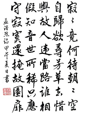 孟浩然(689~740),唐代诗人。本名浩,字浩然。襄州襄阳人(今湖北襄阳人),世称孟襄阳。因他未曾入仕,又被称为孟山人。早年有志用世,在仕途困顿、痛苦失望后,尚能自重,不媚俗世,以隐士终身。曾隐居鹿门山,生了六子,著诗二百余首。年四十,游长安,应进士不第。曾在太学赋诗,名动公卿,一座倾服,为之搁笔。后为荆州从事,患疽卒。曾游历东南各地。诗与另一位山水田园诗人王维并称“王孟”。其诗清淡,擅长于写景,多反映山水田园和隐逸、行旅等内容,绝大部分为五言短篇,在艺术上有独特的造诣。有《孟浩然集》三卷,今编诗二卷。