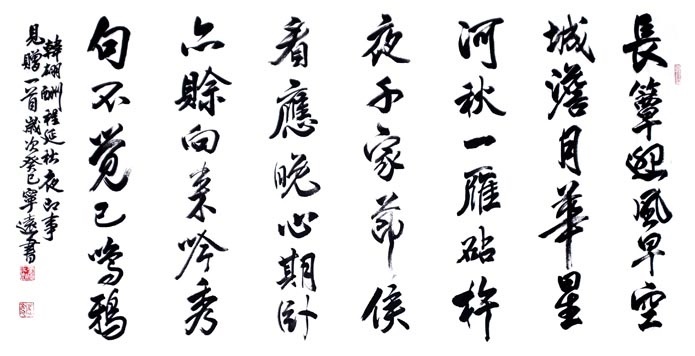 “星河秋一雁”,是说一只孤雁划过秋夜的天空向银河飞去。“星河”是寂寥的,“一雁”是孤独的,“秋”夜是清冷的,三种事物连缀成文,构成幽深的意境,使人感触到诗人心境为孤凄。