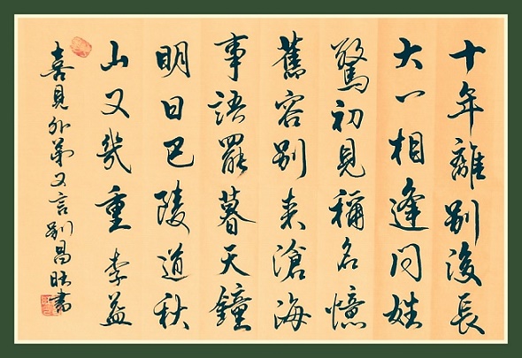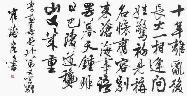 十年离乱后,长大一相逢。出自唐代诗人李益作品《喜见外弟又言别》。此诗描写了诗人同表弟在乱离中不期而遇而又匆匆话别的伤感场面,抒发了真挚的至亲情谊和人生聚散离合无定的感慨,从侧面反映了动乱给人们带来的痛苦。全诗用凝炼的语言,白描的手法,生动的细节,典型的场景,层次分明地再现了社会动乱中人生聚散的独特一幕,具有强烈的生活真实感。