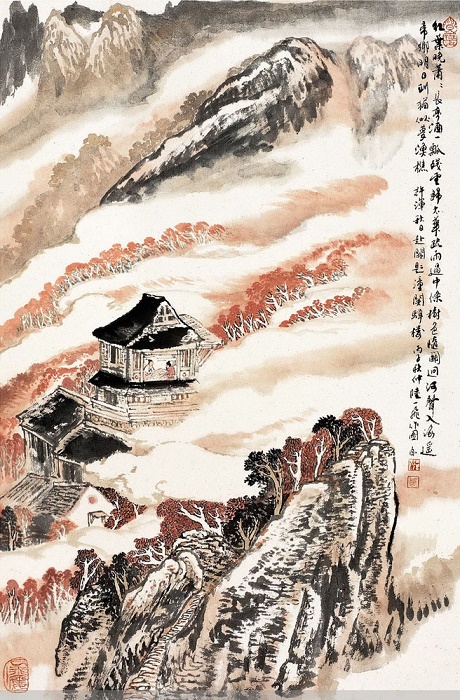 晚风中的红叶萧萧落下,长亭里痛饮下别酒一瓢。