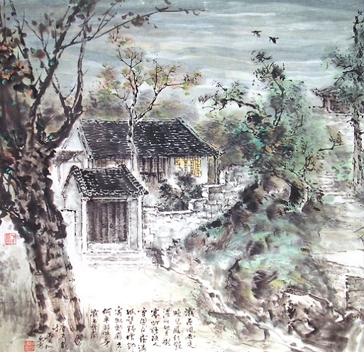 接着画卷的景象则由寥廓的天际渐渐地转到地面,转到诗中的主人。只见风雨中片片黄叶从树上飘落下来,而寄居在孤寺中的一个旅客正独对孤灯,默默地出神。“落叶他乡树”这句,很值得玩味。中国有句老话叫做“树高千丈,叶落归根”,诗人在他乡看到落叶的情景,不能不有所感触。自己羁留异地,不知何时才能回到故乡东海(今江苏连云港市西南)。其心情之酸楚,完全渗透在这句诗的字里行间。“寒灯独夜人”,一个“寒”字,一个“独”字,写尽客中凄凉孤独的况味。不难想象:一灯如豆,伴着一个孤寂的身影。夜已深了,寒意重重,在寒气包围中,灯光更显得黯淡无力,而诗人孤独凄苦的心情也随之更进了一层。“寒”与“独”起着相互映衬的作用:由寒灯而显出夜长难捱,因孤独而更感到寒气逼人。
