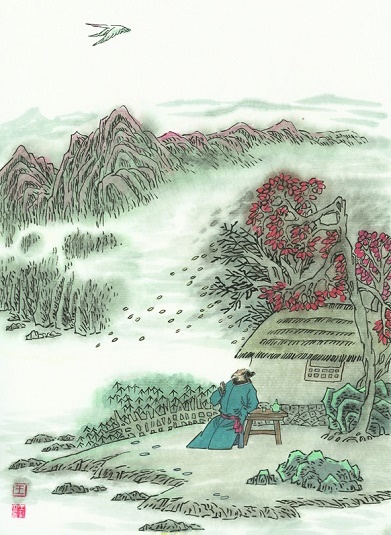 这首诗题名《孤雁》,全篇皆实赋孤雁,“诗眼”就是一个“孤”字。一个“孤”字将全诗的神韵、意境凝聚在一起,浑然天成。这是一只悲伤而执着的孤雁:它不饮,不啄,只是一个劲儿飞着,叫着,追寻它的同伴。诗人同情失群的孤雁,其实是融入了自己的思想感情。
