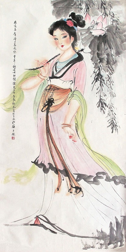 眼前声音、光亮、色彩交错融合的景象,使宫女想起了入宫以前每年在家乡溪水边采莲的欢乐情景:荷叶、罗裙,一色裁成,芙蓉似脸,脸似芙蓉,三人一队,五人一群,溪声潺潺,笑语连连。“越溪”即若耶溪,在浙江绍兴,是当年西施浣纱的地方,这里借指宫女的家乡。这两句以过去对比当下,以往日的欢乐反衬出此时的愁苦,使含而不露的怨情具有更为悠远的神韵。诗的后四句虽是客观的写景与叙事,然而揭开字句的帷幕,却可以听到宫女隐微而又极其伤痛的啜泣之声。
