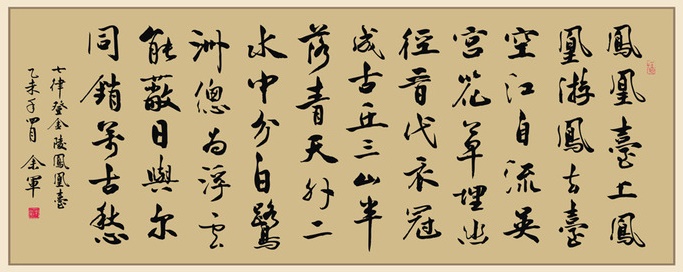 《登金陵凤凰台》是唐代的律诗中脍炙人口的杰作。开头两句写凤凰台的传说,十四字中连用了三个凤字,却不觉得重复,音节流转明快,极其优美。“凤凰台”在金陵凤凰山上,相传南朝刘宋永嘉年间有凤凰集于此山,乃筑台,山和台也由此得名。在封建时代,凤凰是一种祥瑞。当年凤凰来游象征着王朝的兴盛;而“如今”凤去台空,就连六朝的繁华也一去不复返了,只有长江的水仍然不停地流着,大自然才是永恒的存在。 三四句就“凤去台空”这一层意思进一步发挥。三国时的吴和后来的东晋都建都于金陵。诗人感慨万分地说,吴国昔日繁华的宫廷已经荒芜,东晋的一代风流人物也早已进入坟墓。那一时的烜赫,在历史上也没有留下了什么有价值的东西。