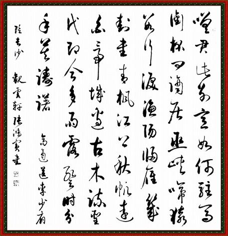 这四句情景相融,结合得自然巧妙,有一种苍凉中饱含亲切的情味。所写之境,从巫峡到衡阳,从青枫浦到白帝城,十分开阔,而分写二人,更显出作者的艺术匠心。
