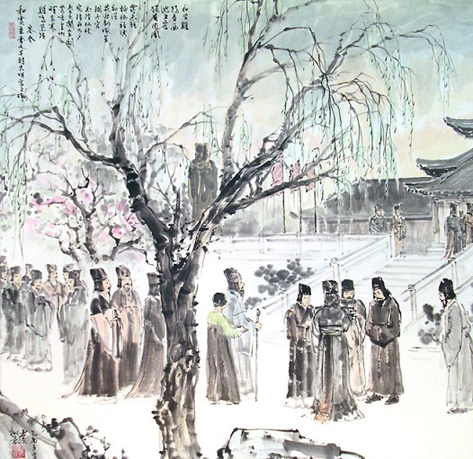 “独有凤池上客,阳春一曲和皆难。”诗的结尾,响应贾至的倡议:唯有身居凤池的中书省贾舍人,你这一曲高雅的阳春自雪和起来实在困难。说和诗难,倒不仅仅是出于对贾至的恭维,或是表现自己的谦逊,这“难”字确实流露出岑参内心的真实感受。一同和诗的王维、杜甫,都是久负盛名的大诗人,与之同和一诗确实不易。王维久任朝官,写起宫廷唱和诗来简直是轻车熟路;杜甫做诗刻苦,语不惊人死不休,又尤长于律诗。诗友在某种意义上又是诗敌,同和一诗实寓有一较短长之意,因此在这场高水平的竞赛中若无高超的手段是根本不可能争先的。后人在评价这组唱和诗时多以岑参此诗为最佳,其致胜之诀不外乎下列三点:
