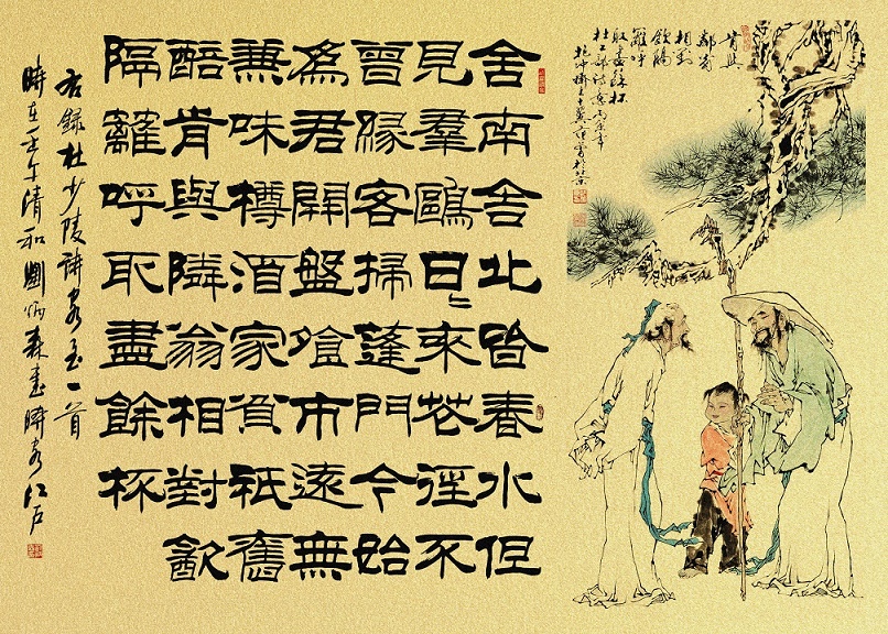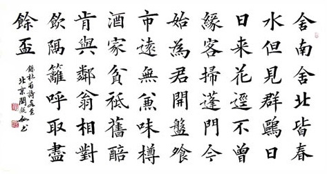 盘飧市远无兼味,樽酒家贫只旧醅。出自唐代诗人杜甫作品《客至》,作于成都草堂落成之后。此诗前两句描写居处的景色,清丽疏淡,与山水鸥鸟为伍,显出与世相隔的心境;后六句写有客来访的欣喜以及诚恳待客,呼唤邻翁对饮的场景。全诗流露诗人诚朴恬淡的情怀和好客的心境,自然浑成,一线相接,把居处景、家常话、故人情等富有情趣的生活场景刻画得细腻逼真,表现出了浓郁的生活气息和人情味。