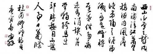 七八句最后点出“野望”的方式和深沉的忧虑。“人事”,人世间的事。由于当时西山三城列兵防戍,蜀地百姓赋役负担沉重,杜甫深为民不堪命而对世事产生“日” 转“萧条”的隐忧。这是结句用意所在。诗人从草堂“跨马”,走“出”南“郊”,纵目四“望”。“ 南浦清江万里桥”是近望之景。“西山白雪三城戍 ”,是远望之景。他由“三城戍”引出成乱的感叹,由“万里桥”兴起出蜀之意。这是中间四句有关家国和个人忧念产生的原因。
