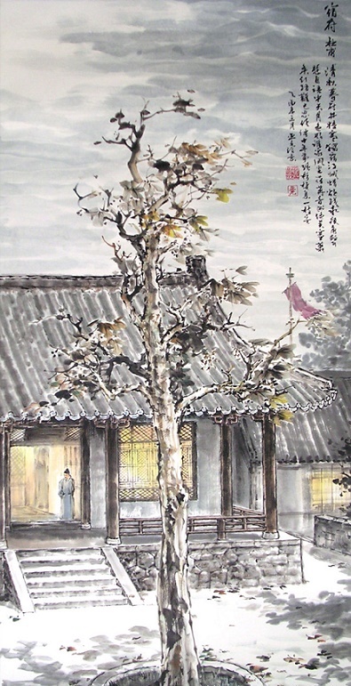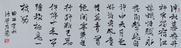 颔联写“独宿”的所闻所见,清代方东树指出:“景中有情,万古奇警。”而造句之新颖,也非同一般。七言律句,一般是上四下三,这一联却是四、一、二的句式,每句读起来有三个停顿。诗人就这样化百炼钢为绕指柔,以顿挫的句法,吞吐的语气,活托出一个看月听角、独宿不寐的人物形象,恰切地表现了无人共语、沉郁悲抑的复杂心情。