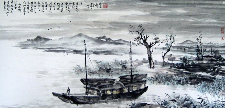 汉口夕阳斜渡鸟,洞庭秋水远连天。出自唐代诗人刘长卿作品《自夏口至鹦鹉洲夕望岳阳寄源中丞》。这首诗是遭贬后触景感怀之作。诗中对被贬于岳阳的源中丞,表示怀念和同情,也是借怜贾谊贬谪长沙,以喻自己的遭贬谪。首联写诗人为身边景物所触动,而想到贬于洞庭湖畔岳阳城友人,通过写江上浪烟来寄托对友人的思念之情。中间两联写诗人由夏口至鹦鹉洲一路的所见所闻。尾联为劝慰元中丞语,忧愤之语倾泻而出,以同情友人在政治上遭受打击的境遇作结,也是作者自己人生遭际的写照。全诗语言圆熟,意境开阔,结构紧密,是艺术上较成熟的作品。