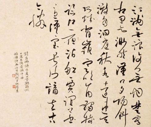 颔联分写两地景物。上句写诗人回眸汉口所见的暮景,下句虚拟源中丞所在地——洞庭的浩渺水色。远眺汉口,夕阳西下,暮归的鸟儿斜着翅膀渡过江去;作者遥想洞庭湖,秋水浩森,鼓涨到远方,似与远不可测的天边连在一起。在构图上更切近画理:颔联是工对,但形成了浑然一体的富于远势的图景,夕阳飞鸟着一“斜”字,画龙点睛,那暮色中斜飞的江鸟,似乎牵引着诗人的愁思,顺着秋波,与洞庭相连,而一个“远”字更使那愁思由一点而荡溢为浩渺无际。一近景。一远景;一实写,一虚拟,创造了极富张力、饶有空间感的“形”。一个身在汀洲心驰洞庭的诗人形象隐约其间,他的心已由此地(鹦鹉洲)飞越到彼地(洞庭湖)了。笔力清爽,情思渺远。结构上,上下两句似无联系,但这种切割空间的手法正好造成诗人凝眸飞鸟、思接远方的艺术空白,诗人的相思之情充盈激荡于其中。