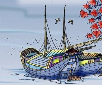 颈联转折到眼前见闻口诗人在自家的小船上,怀思久之,不知不觉时间由夕阳西下推移到夜色沉沉的晚间。从与汀洲隔江相对背靠龟山的汉阳城里传来令人寒栗的号角声;一棵孤树下临大江,诗人的行船泊在沉沉夜色中,融没在浩渺的江面上。这一联因感情由上文的激扬陡转为低抑,所以这里所写的景物亦呈现出孤独凄寒的特征。城曰“孤”,角日“寒”,树日“独”,都是诗人特定心境物化出典的另一种自然风貌。此次诗人被贬载痛南行的悲苦,置身异地的孤独情怀以及由号角传出的战乱气息,均借景物淡然映出口情景互藏其宅,是此联的妙处所在。