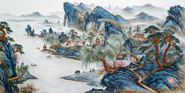 此诗的开头四句,诗人并未切入正题,像不经意地描绘了一幅艳丽的宫苑春景图:早春二月,在上林苑里,黄鹂成群地飞鸣追逐;紫禁城中春意盎然,拂晓时分,在树木葱茏之中,洒下一片淡淡的春阴。长乐宫的钟声飞过宫墙,飘到空中,又缓缓散落在花树之外。那曾是玄宗皇帝居住之地的龙池,千万株杨柳,在细雨中越发显得苍翠欲滴。这四句诗,写的都是皇宫苑囿殿阁的景色。