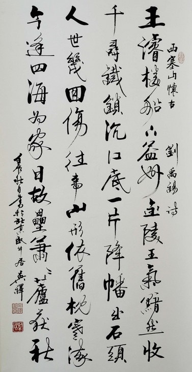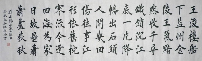 王濬楼船下益州,金陵王气黯然收。出自唐代诗人刘禹锡作品《西塞山怀古》。此诗怀古伤今。前四句,写西晋灭吴的历史故事,表现国家统一是历史之必然,阐发了事物兴废决定于人的思想;后四句写西塞山,点出它之所以闻名,是因为曾经是军事要塞,而今山形依旧,可是人事全非,拓开了诗的主题。全诗叙说的内容是历史上的事实,状摹的景色是眼前的实景,抒发的感叹是诗人胸中的真情。诗人巧妙地把史、景、情完美地揉合在一起,使得三者相映相衬,相长相生,营造出一种含蕴半瞻的苍凉意境,给人以沉郁顿挫之感。