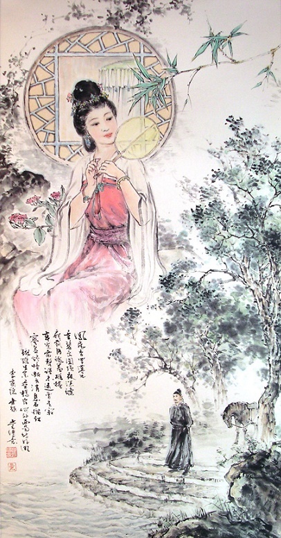 接下来是女主人公的一段回忆,内容是她和意中人一次偶然的相遇──“扇裁月魄羞难掩,车走雷声语未通。”对方驱车匆匆走过,自己因为羞涩,用团扇遮面,虽相见而未及通一语。从上下文描写的情况看,这次相遇不象是初次邂逅,而是“断无消息”之前的最后一次照面。否则,不可能有深夜缝制罗帐,期待会合的举动。正因为是最后一次未通言语的相遇,在长期得不到对方音讯的今天回忆往事,就越发感到失去那次机缘的可惜,而那次相遇的情景也就越加清晰而深刻地留在记忆中。所以这一联不只是描绘了女主人公爱情生活中一个难忘的片断,而且曲折地表达了她在追思往事时那种惋惜、怅惘而又深情地加以回味的复杂心理。起联与颔联之间,在情节上有很大的跳跃,最后一次照面之前的许多情事(比如她和对方如何结识、相爱等)统统省略了。