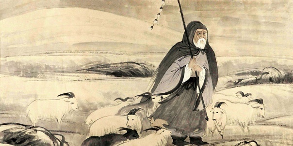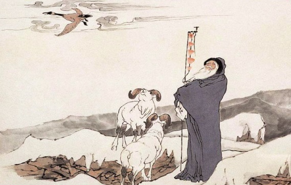 羁留北海音书断绝,头顶胡天明月;荒陇牧羊回来,茫茫草原已升暮烟。