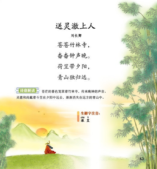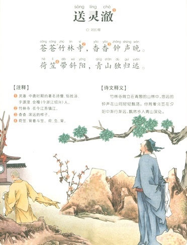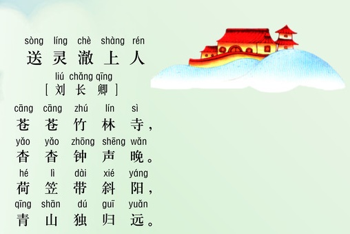 这首小诗记叙诗人在傍晚送灵澈返竹林寺时的心情,它借景抒情,构思精致,语言精炼,素朴秀美,是唐代山水诗的名篇。