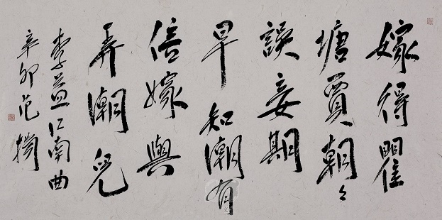 此诗用民歌体写作。因为是民歌体,所以身为文人的李益有意用民间的口语写作。整首诗明白如话,自始至终是一个商人妇自怨自艾,或是向人诉说的口吻。但是,整首诗明白如话,平易近人,那是指其语言而言,其内容却不平淡,而是平中有奇。