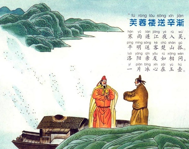 ⑴芙蓉楼:原名西北楼,登临可以俯瞰长江,遥望江北,在润州(今江苏省镇江市)西北。据《元和郡县志》卷二十六《江南道·润州》丹阳:“晋王恭为刺史,改创西南楼名万岁楼,西北楼名芙蓉楼。”一说此处指黔阳(今湖南黔城)芙蓉楼。辛渐:诗人的一位朋友。