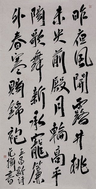 后两句写新人的由来和她受宠的具体情状。卫子夫原为平阳公主的歌女,因妙丽善舞,被汉武帝看中,召入宫中,大得宠幸。“新承宠”一句,即就此而发。为了具体说明新人的受宠,第四句选取了一个典型的细节。露井桃开,可知已是春暖时节,但宠意正浓的皇帝犹恐帘外春寒,所以特赐锦袍,见出其过分的关心。通过这一细节描写,新人受宠之深,显而易见。另外,由“新承宠”三字,人们自然会联想起那个刚刚失宠的旧人,此时此刻,她可能正站在月光如水的幽宫檐下,遥望未央殿,耳听新人的歌舞嬉戏之声而黯然神伤,其孤寂、愁惨、怨悱之情状。