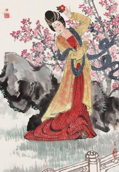 天宝(742—756)年间,唐玄宗宠纳杨玉环,淫佚无度。据《汉书·外戚传》记载,汉武帝即位后,他的第一位皇后陈氏数年无子,所以平阳公主就把邻近大户女子收买来,养在家中,准备让汉武帝选取为妃。适逢汉武帝在霸上祭扫后来到平阳侯家中,平阳公主就将这些美女装饰打扮起来,供汉武帝选择。但汉武帝看后,都不满意。接着,平阳公主让讴者助兴,汉武帝看中卫子夫宠幸了她,并带入宫中。卫子夫入宫一年多没被复幸。