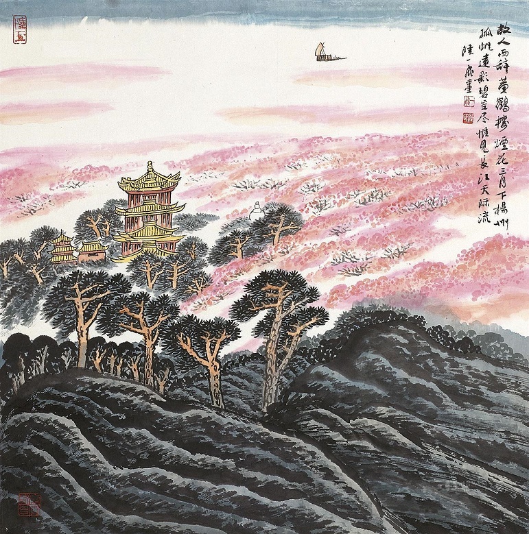 李白与孟浩然的交往,是在他刚出四川不久,正当年轻快意的时候,他眼里的世界,还几乎像黄金一般美好。比李白大十多岁的孟浩然,这时已经诗名满天下。他给李白的印象是陶醉在山水之间,自由而愉快,所以李白在《赠孟浩然》诗中说:“吾爱孟夫子,风流天下闻。红颜弃轩冕,白首卧松云。”这次离别正是开元盛世,太平而又繁荣,季节是烟花三月、春意最浓的时候,从黄鹤楼顺着长江而下,这一路都是繁花似锦。李白是那样一个浪漫、爱好游览的人,所以这次离别完全是在很浓郁的畅想曲和抒情诗的气氛里进行的。李白心里没有什么忧伤和不愉快,相反地认为孟浩然这趟旅行快乐得很,他向往扬州地区,又向往孟浩然,所以一边送别,一边心也就跟着飞翔,胸中有无穷的诗意随着江水荡漾。在一片美景之中送别友人,真是别有一番滋味在心头,美景令人悦目,送别却令人伤怀,以景见情,含蓄深厚,有如弦外之音,达到使人神往,低徊遐想的艺术效果。