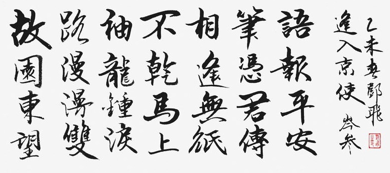 “马上相逢无纸笔,凭君传语报平安”,这两句是写遇到入京使者时欲捎书回家报平安又苦于没有纸笔的情形,完全是马上相逢行者匆匆的口气,写得十分传神。“逢”字点出了题目,在赶赴安西的途中,遇到作为入京使者的故人,彼此都鞍马倥偬,交臂而过,一个继续西行,一个东归长安,而自己的妻子也正在长安,正好托故人带封平安家信回去,可偏偏又无纸笔,也顾不上写信了,只好托故人带个口信,“凭君传语报平安”吧。这最后一句诗,处理得很简单,收束得很干净利落,但简净之中寄寓着诗人的一片深情,寄至味于淡薄,颇有韵味。岑参此行是抱着“功名只向马上取”的雄心的,此时,心情是复杂的。他一方面有对帝京、故园相思眷恋的柔情,一方面也表现了诗人渴望建功立业的豪迈胸襟,柔情与豪情交织相融,感人至深。