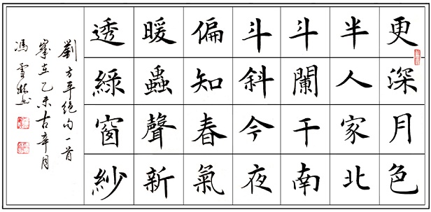 刘方平(生卒年不详),河南洛阳人。唐天宝年间诗人,天宝前期曾应进士试,未考取,从此隐居颍水、汝河之滨,终身未仕。与皇甫冉为诗友,为萧颖士赏识。工诗,善画山水。其诗多咏物写景之作,尤擅绝句,其诗多写闺情,乡思,思想内容较贫弱,但艺术性较高,善于寓情于景,意蕴无穷。