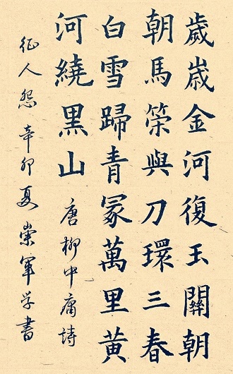 柳中庸 (?—约775),唐代诗人。名淡,中庸是其字,河东(今山西永济)人,为柳宗元族叔。大历年间进士,曾授洪府户曹,不就。萧颖士以女妻之。与弟中行并有文名。与李端为诗友。《征人怨》是其流传最广的一首诗。《全唐诗》存其诗十三首。