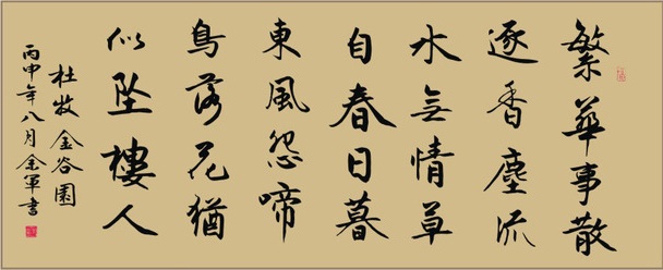 ⑴金谷园:金谷本地名,在河南洛阳市西北,西晋卫尉石崇筑园于此,园极奢丽。