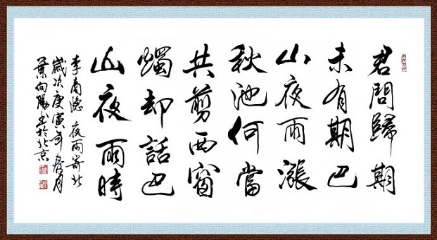 你问我何时回家,我回家的日期定不下来啊!我此时唯一能告诉你的,就是这正在盛满秋池的绵绵不尽的巴山夜雨了。如果有那么一天,我们一齐坐在家里的西窗下,共剪烛花,相互倾诉今宵巴山夜雨中的思念之情,那该多好!