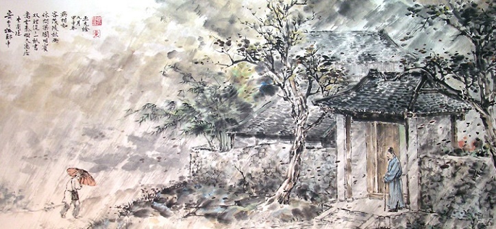 “嵩云秦树久离居,双鲤迢迢一纸书”,首句嵩、秦分指自己所在的洛阳和令狐所在的长安。“嵩云秦树”化用杜甫《春日忆李白》中即景寓情的名句:“渭北春天树,江东目暮云。”云、树是分居两地的朋友即目所见的景物,也是彼此思念之情的寄托。“嵩云秦树”之所以不能用“京华洛下”之类的词语替代,正是因为后者只说明京、洛离居的事实,前者却能同时唤起对他们相互思念情景的悠远想象,在脑海中浮现出两位朋友遥望云树、神驰天外的画面。这正是诗歌语言所特具的意象美。次句说令狐从远方寄书存问。上句平平叙起,这句款款承接,初读只党平淡,但和上下文联系起来细加吟味,却感到在平淡中自含隽永的情味。久别远隔,两地思念,正当自己闲居多病、秋雨寂寥之际,忽得故交寄书殷勤存问,自然会格外感到友谊的温暖。“迢迢”、“一纸”,从对比映衬中显出对方情意的深长和自己接读来书时油然而生的亲切感念之情。