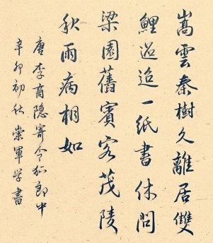 李商隐写过不少寄赠令狐绹的诗,其中确有一部分篇什“词卑志苦”,或迹近陈情告哀,或希求汲引推荐,表现了诗人思想性格中软弱和庸俗的一面。但会昌年间他们的关系比较正常。这首诗中所反映的相互关系,就是比较平等而真诚的。诗中有感念旧恩故交之意,却无卑屈趋奉之态;有感慨身世落寞之辞,却无乞援望荐之意;情意虽谈不上深厚浓至,却比较真率诚恳。
