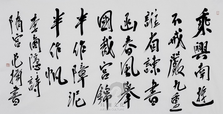 乘兴南游不戒严,九重谁省谏书函。出自唐代诗人李商隐作品《隋宫》。此诗选取典型题材,讽咏隋炀帝杨广奢侈嬉游之事。首二句写炀帝任兴恣游,肆行无忌,且滥杀忠谏之士,遂伏下杀身之祸。次二句取裁锦一事写其耗费之巨,将一人与举国、宫锦与障泥和船帆对比,突出炀帝之骄奢淫逸。然而全诗无一议论之语,于风华流美的叙述之中,暗寓深沉之虑,令人鉴古事而思兴亡。全诗在艺术方法上将实写与虚写巧妙地运用在一起,一实一虚展示了前朝皇帝与当朝皇帝的昏庸,讽刺意味浓厚,具有力度,此诗长于思想性,不失为政治讽刺诗佳作。