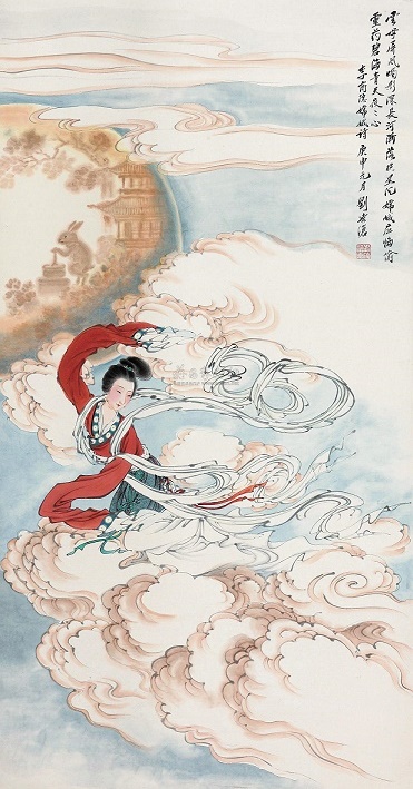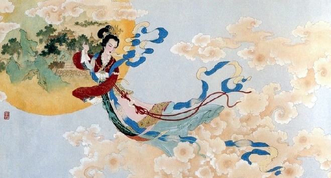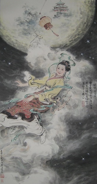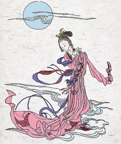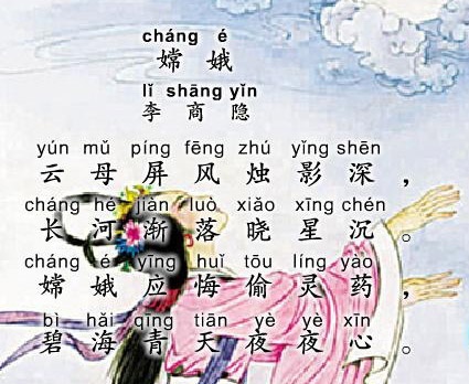 嫦娥后悔寂寞,后悔偷吃灵药。面对碧海蓝天,日夜思念人间。