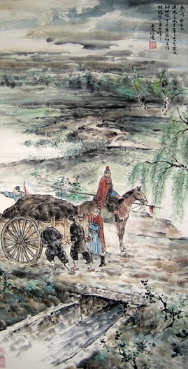 And the causeway gleams with willows, and wheatfields wave in the wind,