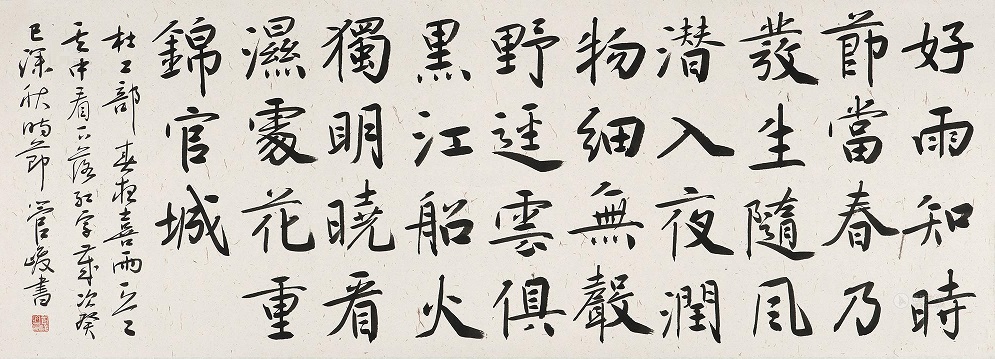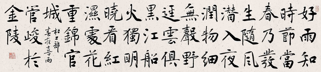 好雨似乎会挑选时辰,降临在万物萌生之春。伴随和风,悄悄进入夜幕。细细密密,滋润大地万物。浓浓乌云,笼罩田野小路;点点灯火,闪烁江上渔船。明早再看带露的鲜花,成都满城必将繁花盛开。