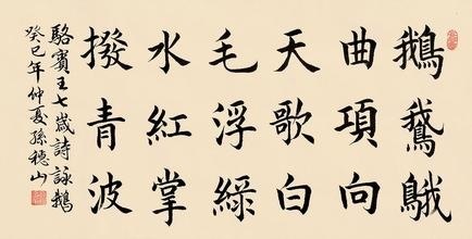 小时候的骆宾王,住在义乌县城北的一个小村子里。村外有一口池塘叫骆家塘。每到春天,塘边柳丝飘拂,池水清澈见底,水上鹅儿成群,景色格外迷人。有一天,家中来了一位客人。客人见他面容清秀,聪敏伶俐,就问他几个问题。骆宾王皆对答如流,使客人惊讶不已。骆宾王跟着客人走到骆家塘时,一群白鹅正在池塘里浮游,客人有意试试骆宾王,便指着鹅儿要他以鹅作诗,骆宾王略略思索便创作了此诗。